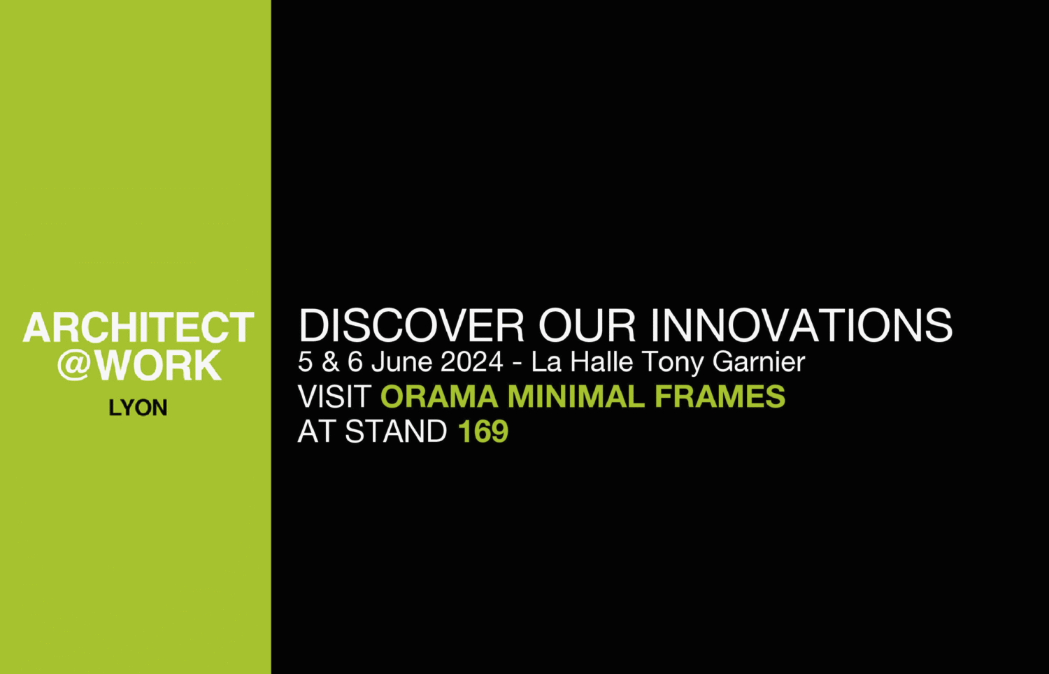 After our successful participation a few days ago in Brussels’ edition of the infamous Architect@Work fair, Orama Minimal Frames will be presented in the French audience at the ARCHITECT@WORK Lyon, the atypical event for architects, interior designers and other professionals.